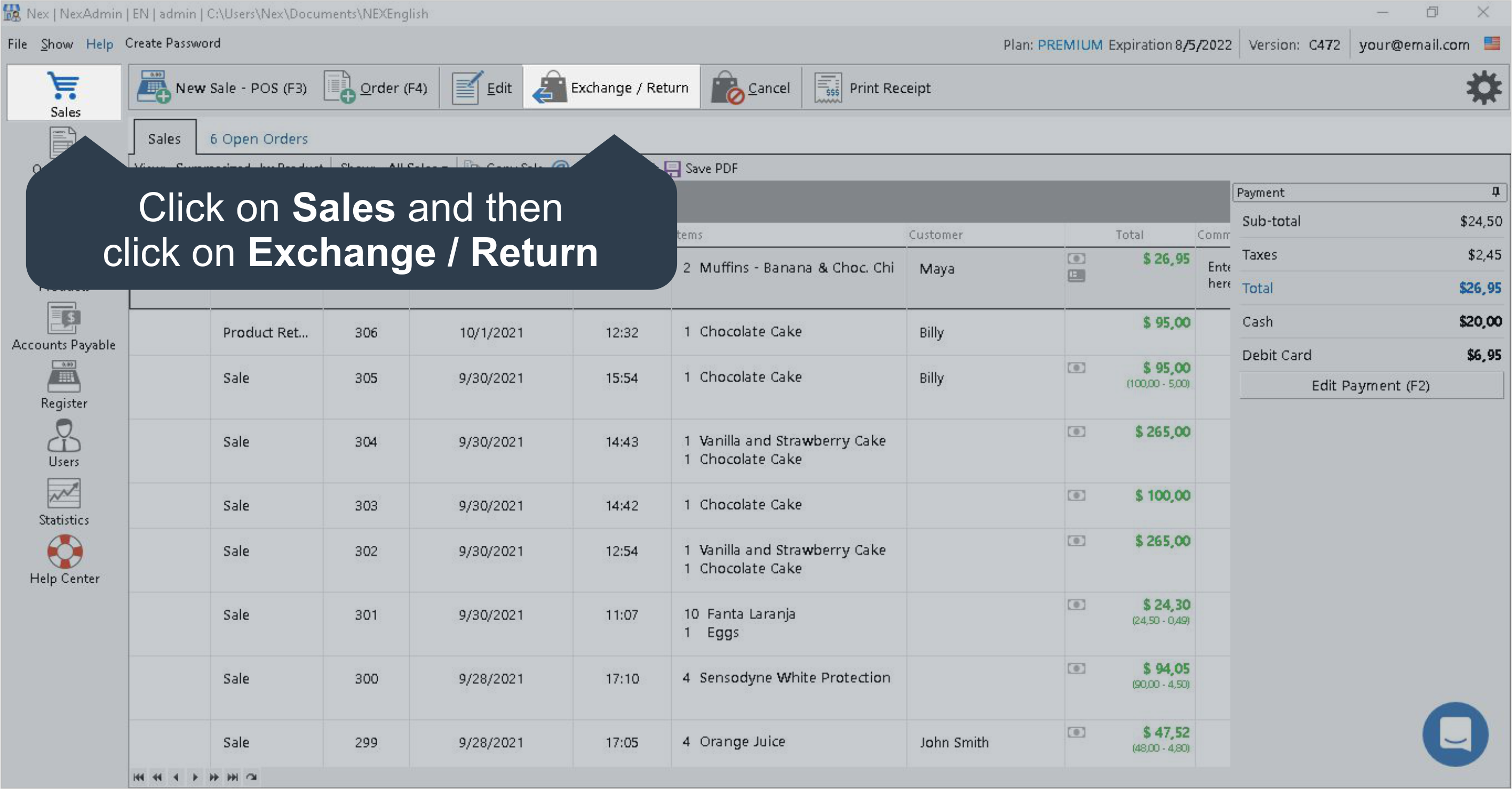 1. Inside your Sales screen, press your Exchange/Return button.