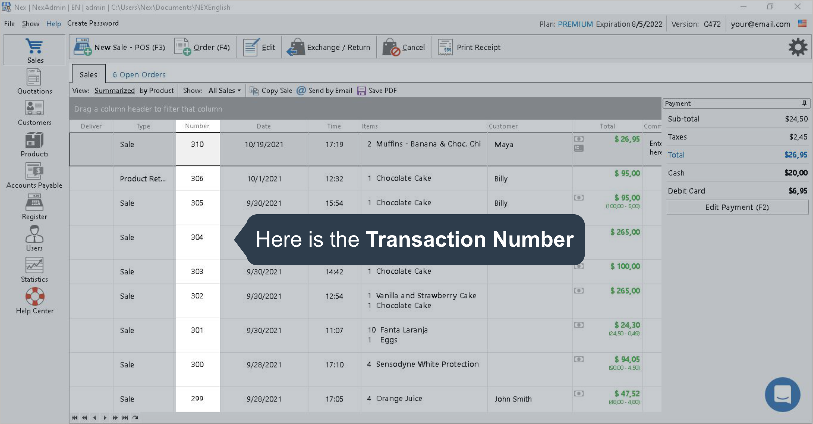 two.1. You can verify the TRANSACTION NUMBER on the Sales screen, using the cavalcade NUMBER. Another way would exist using the Sale Receipt.