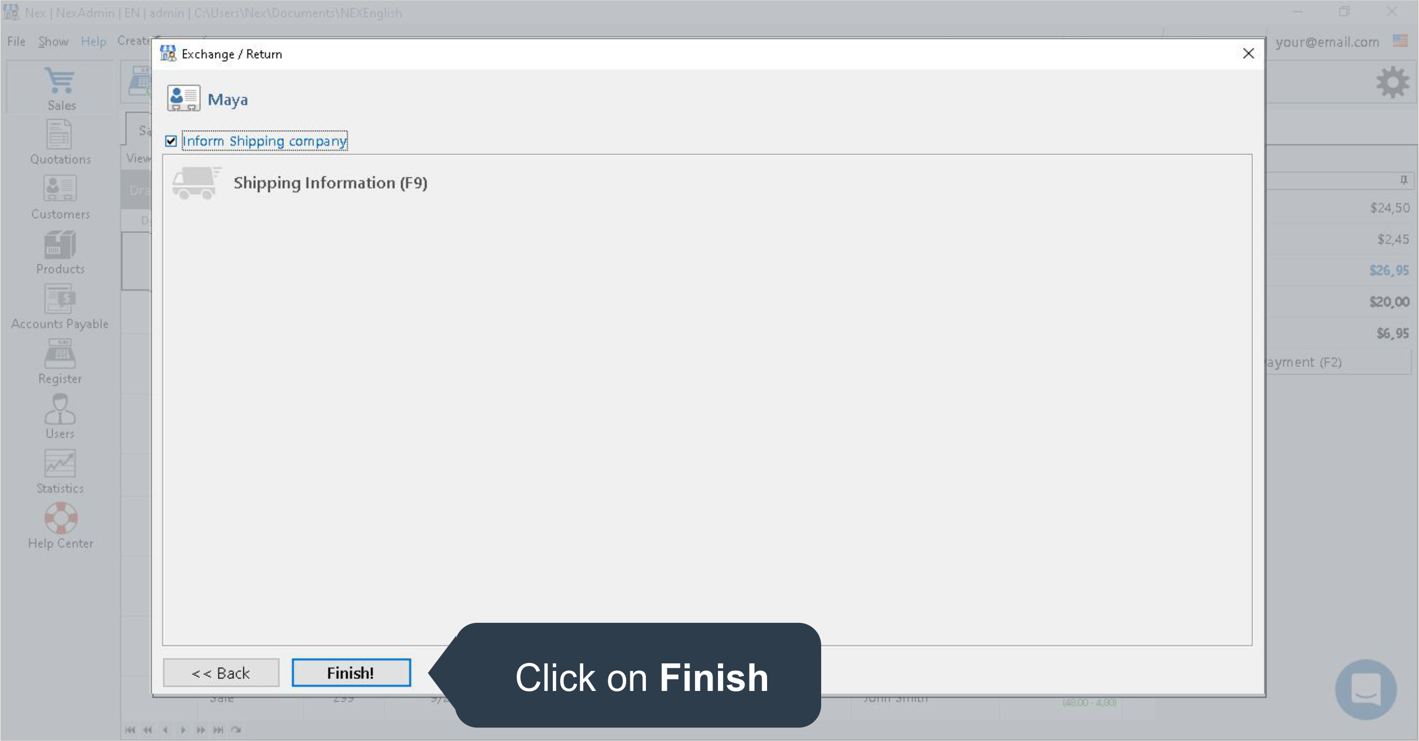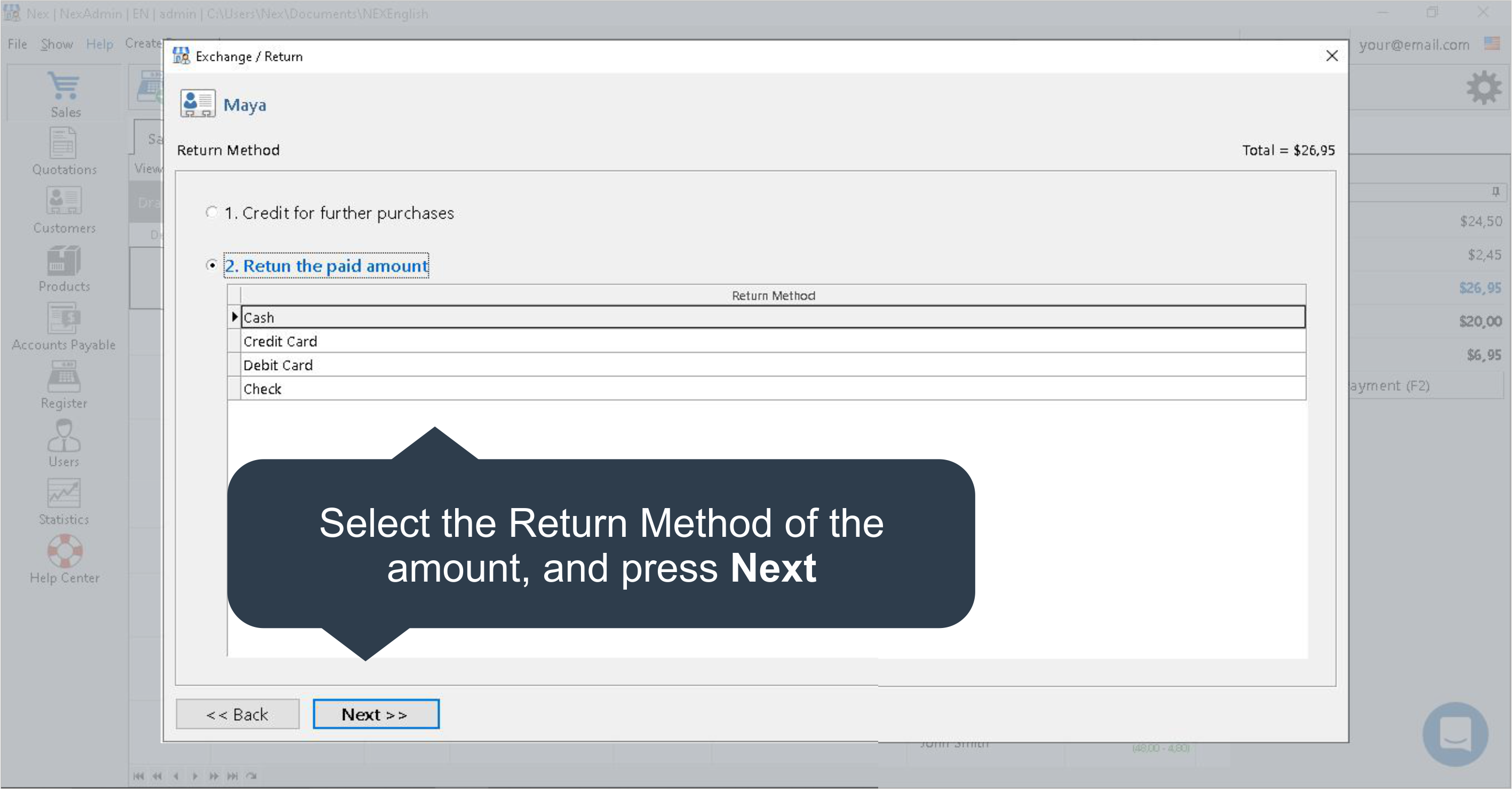 Select the returning method to give back to your customer.