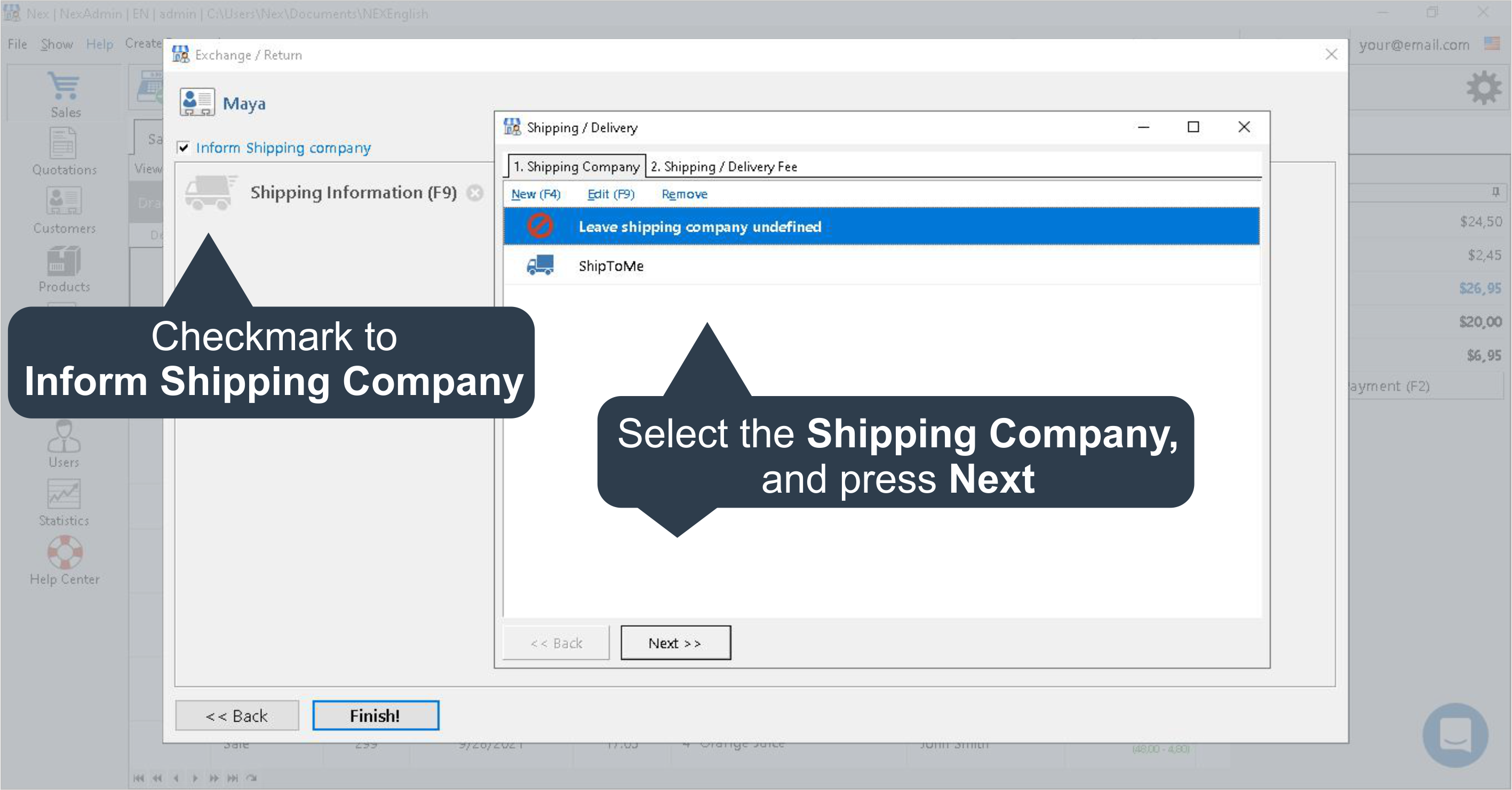 7.i. Select the Shipping Company and printing Next.