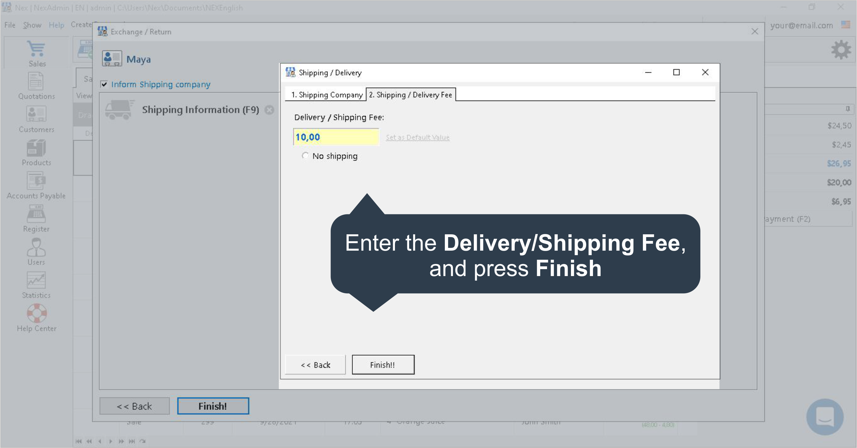 7.ii. Enter the Delivery or Shipping Fee and printing Finish.